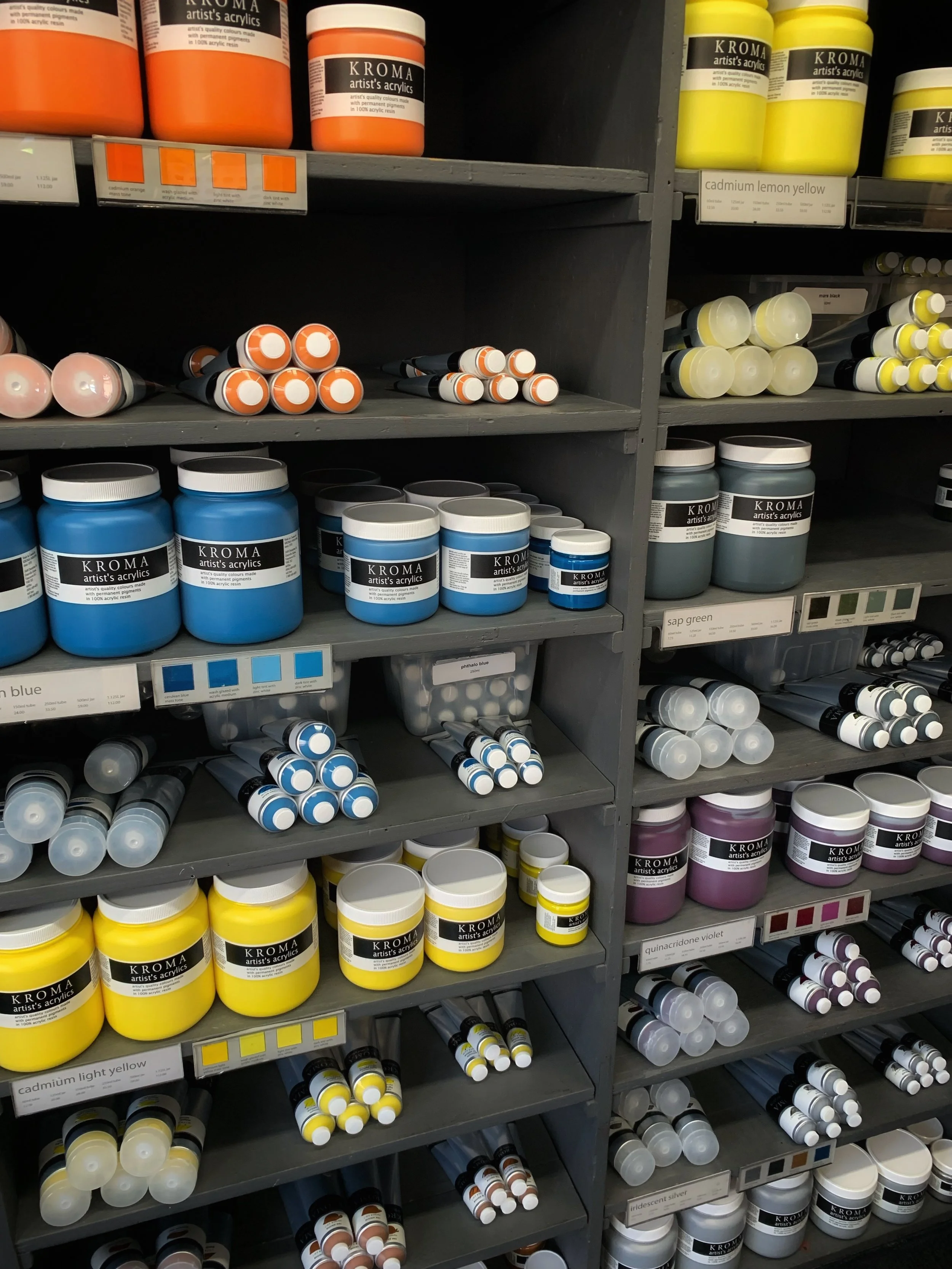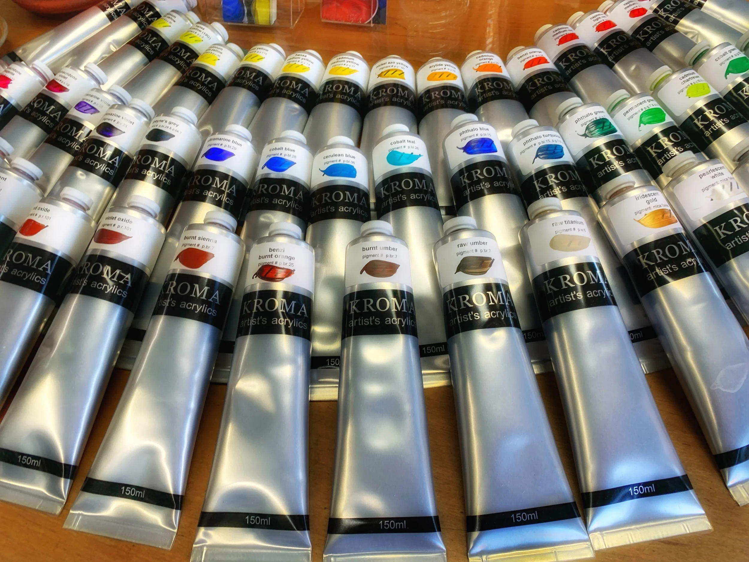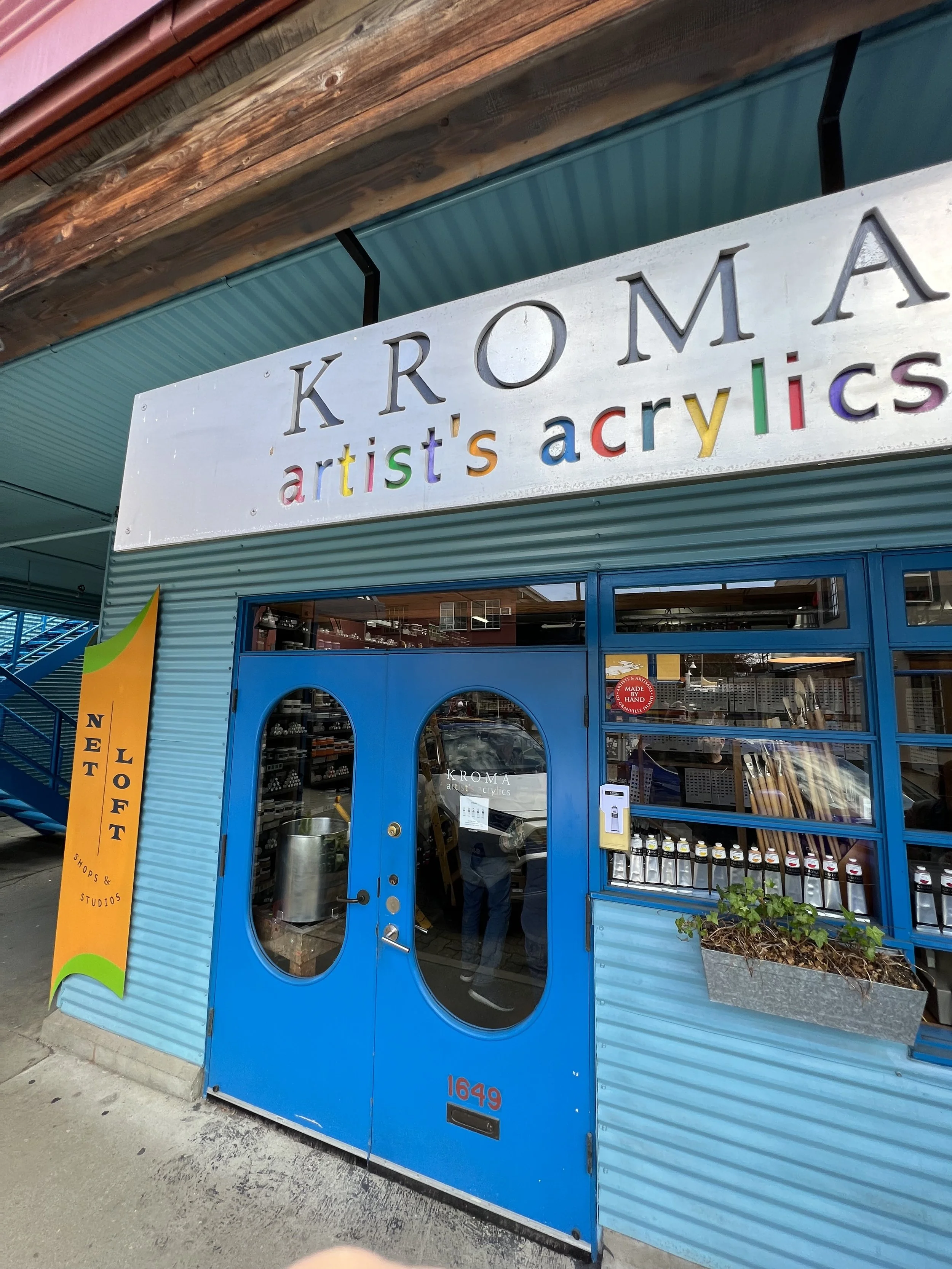 Now, I don’t usually get evangelical about my supplies (unless I’ve had two mezcals and someone casually insults matte gel medium). But Kroma? That’s different. These paints are made—by hand—in a small studio on Granville Island, right here in Vancouver. No filler. No mystery binders. No pigment pulled out of a Crayola crime scene. Just rich, vibrant, lightfast color mixed with actual care by actual humans.